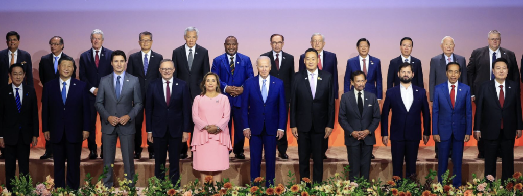 El 17 de noviembre del 2023, en San Francisco, Perú, representado por la presidenta de la república, Dina Boluarte, recibio la presidencia del foro APEC de parte del mandatario de Estados Unidos, Joe Biden. En dicha ceremonia, la Jefa del Estado hizo una invitación a las demás economías a visitar nuestro país. “Los esperamos a cada uno de ustedes el próximo año, para que nos honren con su presencia«,.