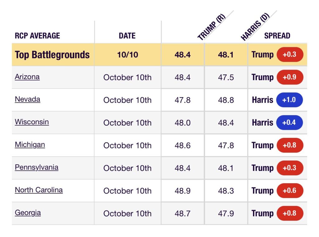 El análisis de los estados clave revela que Harris está perdiendo en prácticamente todos ellos, lo que plantea un panorama desalentador para su campaña. La única excepción son Wisconsin y Nevada, donde Harris ha logrado mantener una leve ventaja. Sin embargo, las proyecciones indican que estos estados podrían inclinarse hacia Trump en un futuro cercano, lo que consolidaría aún más su dominio en el mapa electoral.