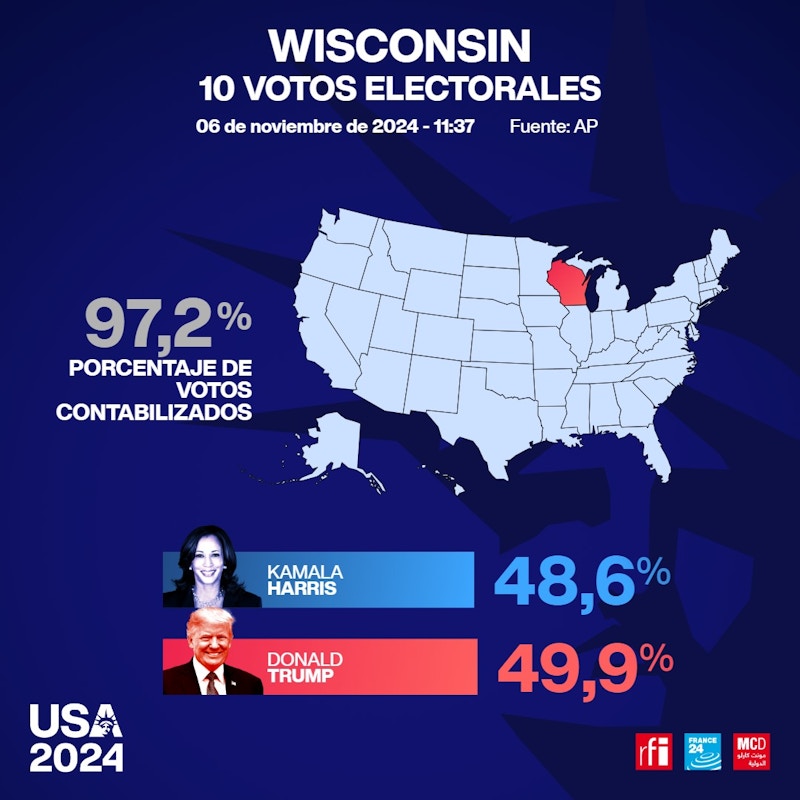 Trump también celebra su triunfo en Wisconsin, donde consolidó su victoria presidencial. Anteriormente, ya había asegurado estados clave como Pensilvania, Carolina del Norte y Georgia.