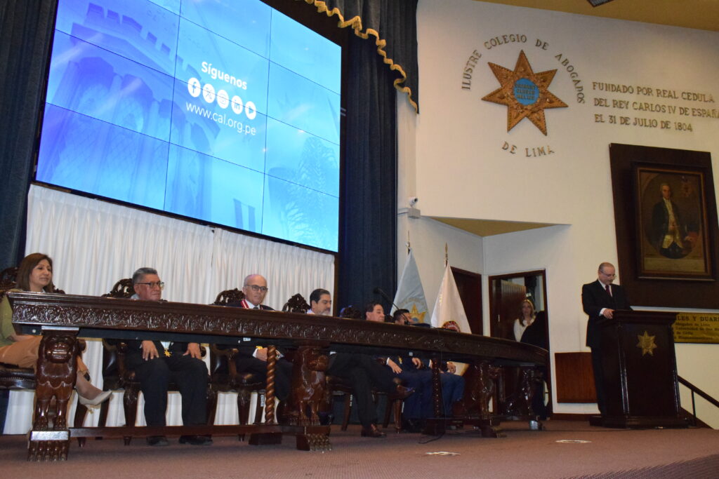 El acto que se realizó en su Auditorio Principal del CAL León Barandiarán, contó con una Mesa de Lujo, como se aprecia en la vista, de izquierda a derecha, Dr. Mauro Leandro Martín, Director de Etica, Doctora Eliana Gonzáles, Directora de Comunicaciones CAL, Ingeniero Carlos Santa Cruz, Gerente General de la importante Minera Yanacocha past, el homenajeado Ingeniero Roque Benavides Ganoza, el Decano del Colegio de Abogados de Lima, Doctor Raúl Canelo Rabanal, Doctor Eduardo Ismodes, Vice Rector PUCP, Doctor Víctor Alca, Director de Bienestar y Doctor Segundo Vásquez Director de Derechos Humanos CAL.