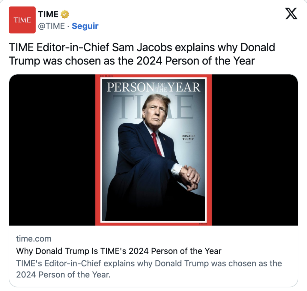 Además de Trump, la lista de finalistas para «Persona del Año» 2024 incluía a personajes como la presidenta socialista de México, Claudia Sheinbaum; el primer ministro israelí, Benjamín Netanyahu; el dueño de X Elon Musk; y la Camarada Kamala Harris, quien fue Derrotada por el ahora presidente electo en las elecciones del 5 de noviembre.