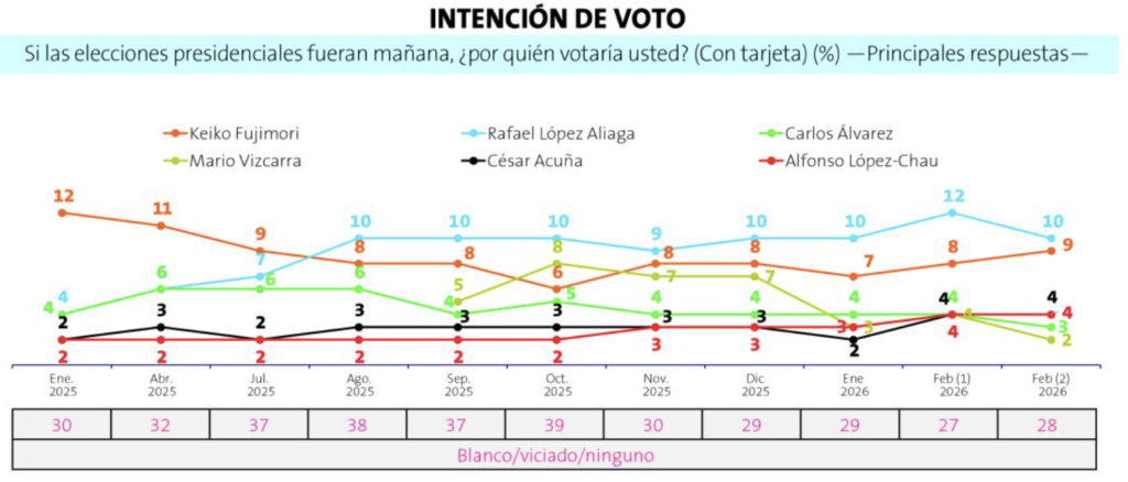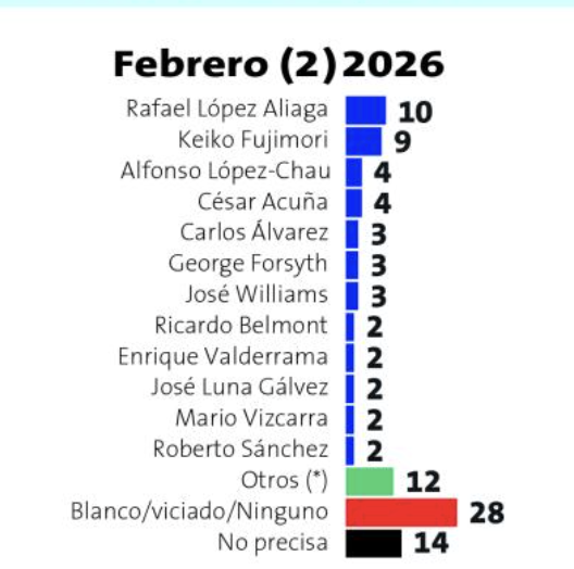 Mientras él cae, otras candidaturas avanzan. La lidereza y candidata del Partido Fuerza Popular Keiko Fujimori subió de 8% a 9%, José Williams ganó un punto y el voto blanco, viciado o ninguno alcanzó el 28%. El mensaje de la ciudadanía es claro y sin margen de error el electorado no perdona la falta de convicción ni los cálculos políticos que terminan beneficiando a la izquierda radical.